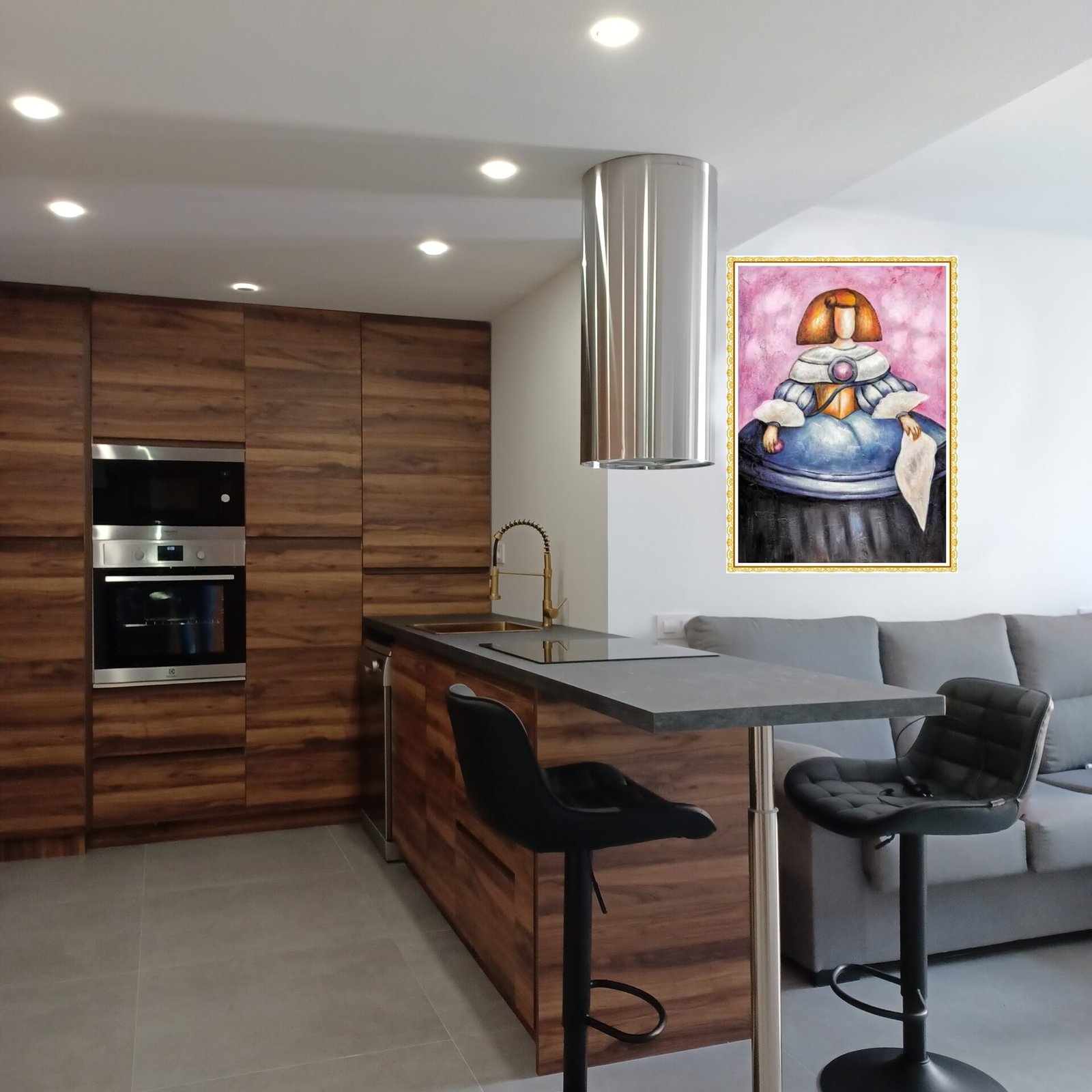 Con una distribución en «L», destaca la amplia isla central, que integra la zona de cocción y se abre al gran salón, convirtiéndose en el corazón del hogar.